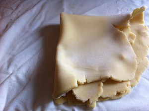 I needed to make dessert for our Basque club member dinner and I didn’t have a lot of time to spend making the dessert. I chose to make gateau Basque because I could make part of it the day before and keep it in the frig. There are as many different versions of gateau as there are paellas. Gateau is from the French side of the Basque Country. I was fortunate to have tasted some wonderful gateau when I visited St. Jean de Luc in France a few years ago. One of my friends told me that this gateau reminded him of his mothers! Best compliment ever. This gateau Basque is adapted from the cookbook Recipes from Basque Restaurants of the West by Clara Salaverria Perkins printed in 1995. It isn’t a really traditional Gateau Basque…it’s the easy version. Instead of making the filling from scratch this recipe uses Jello Cook and Serve pudding mix.