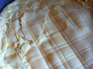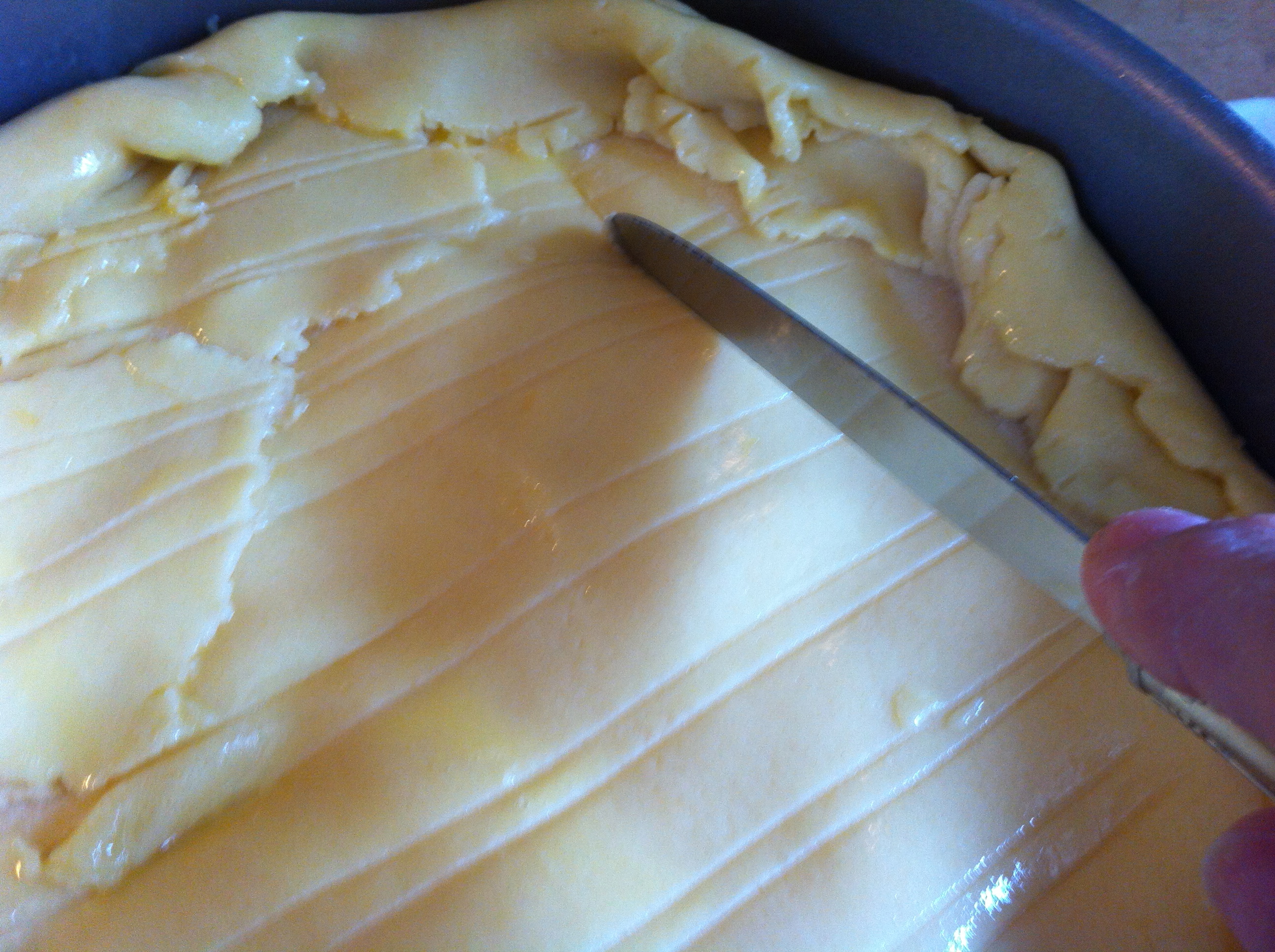 Score the top of the gateau by carefully making diamond designs with the blunt side of a knife.