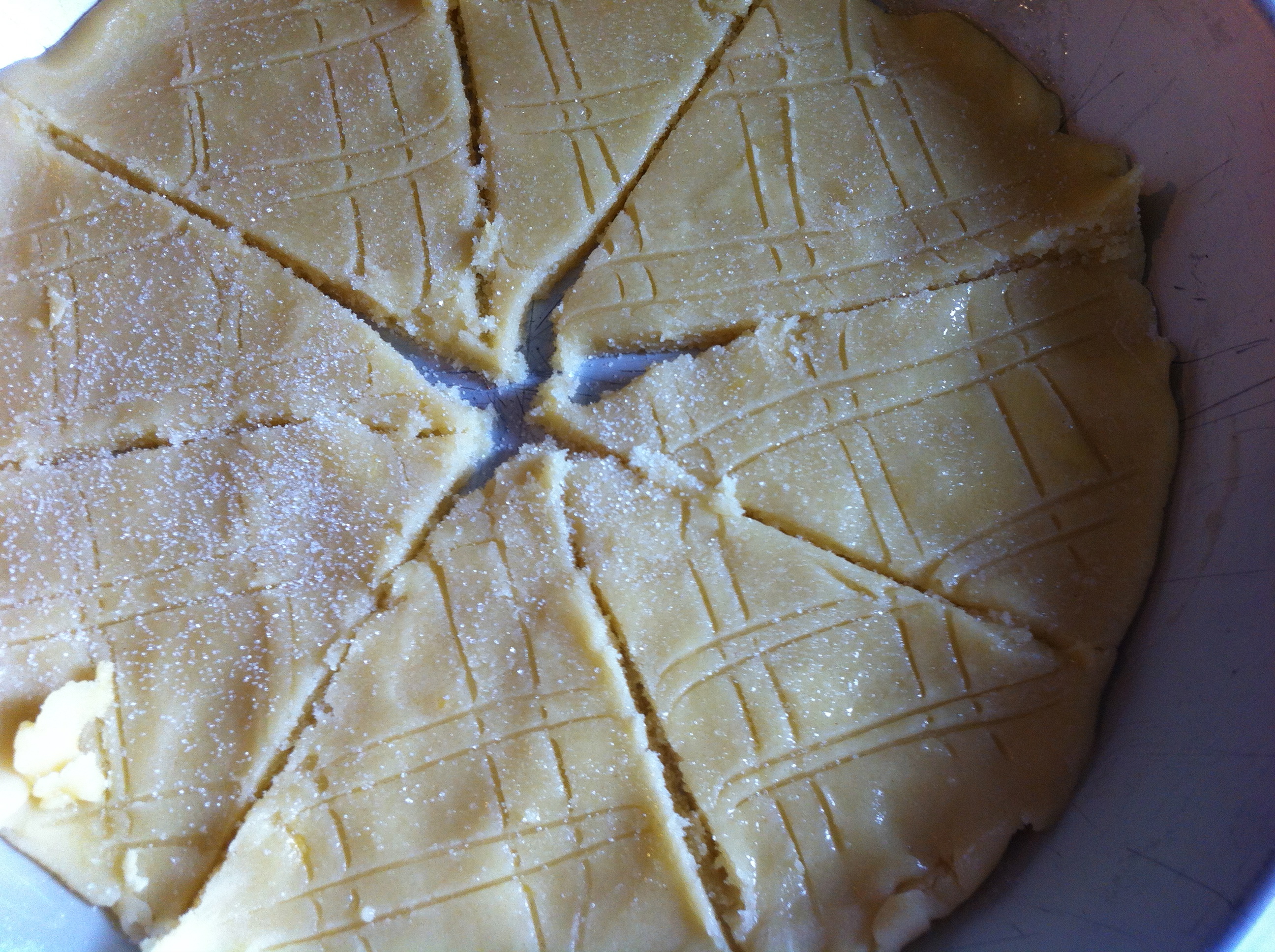 Roll out, score and cut the dough as you would a shortbread cookie dough. Dust lightly with bakers sugar and bake at 350 degrees for about 10-15 minutes or until golden brown.